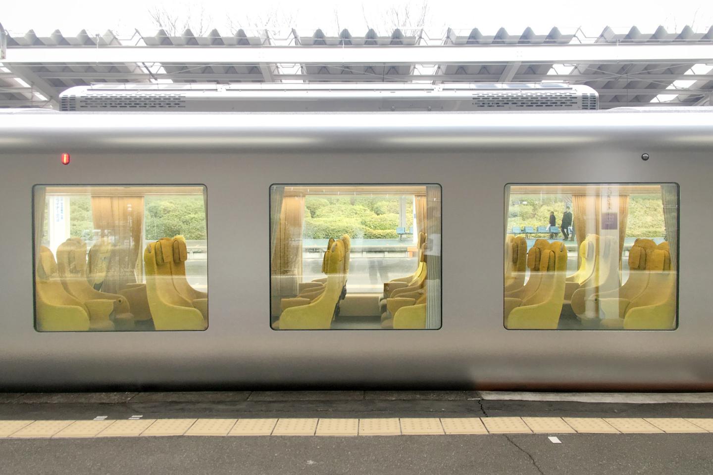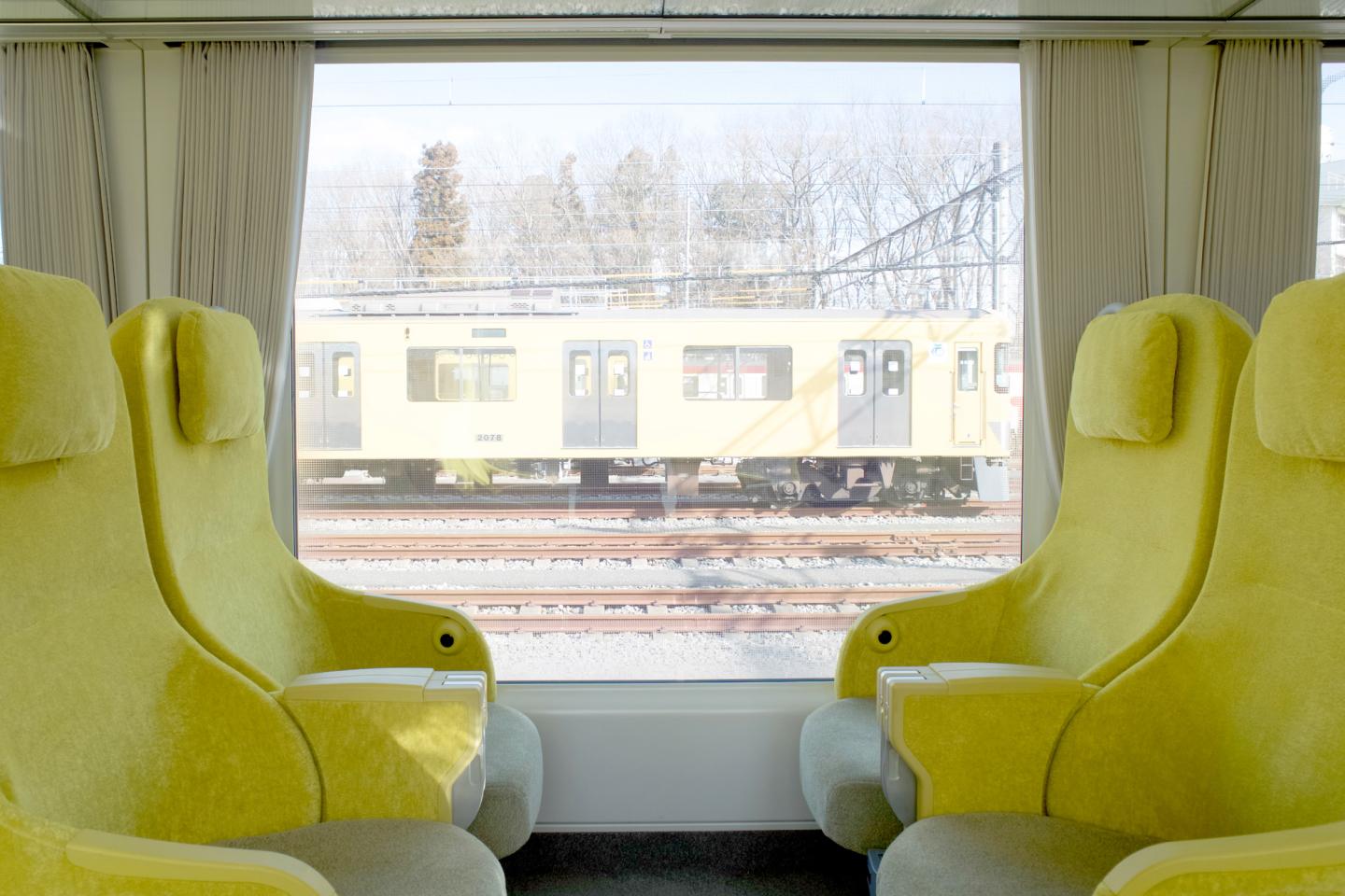 The living room idea Kazuyo mentions begins with the enormous windows in the passenger compartment. Unlike most trains, they start much lower near the floor, invoking the feeling of an architectural space. They also help to dissolve the separation between the inside and outside.