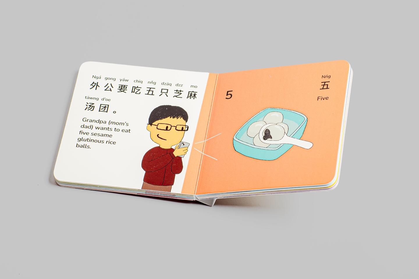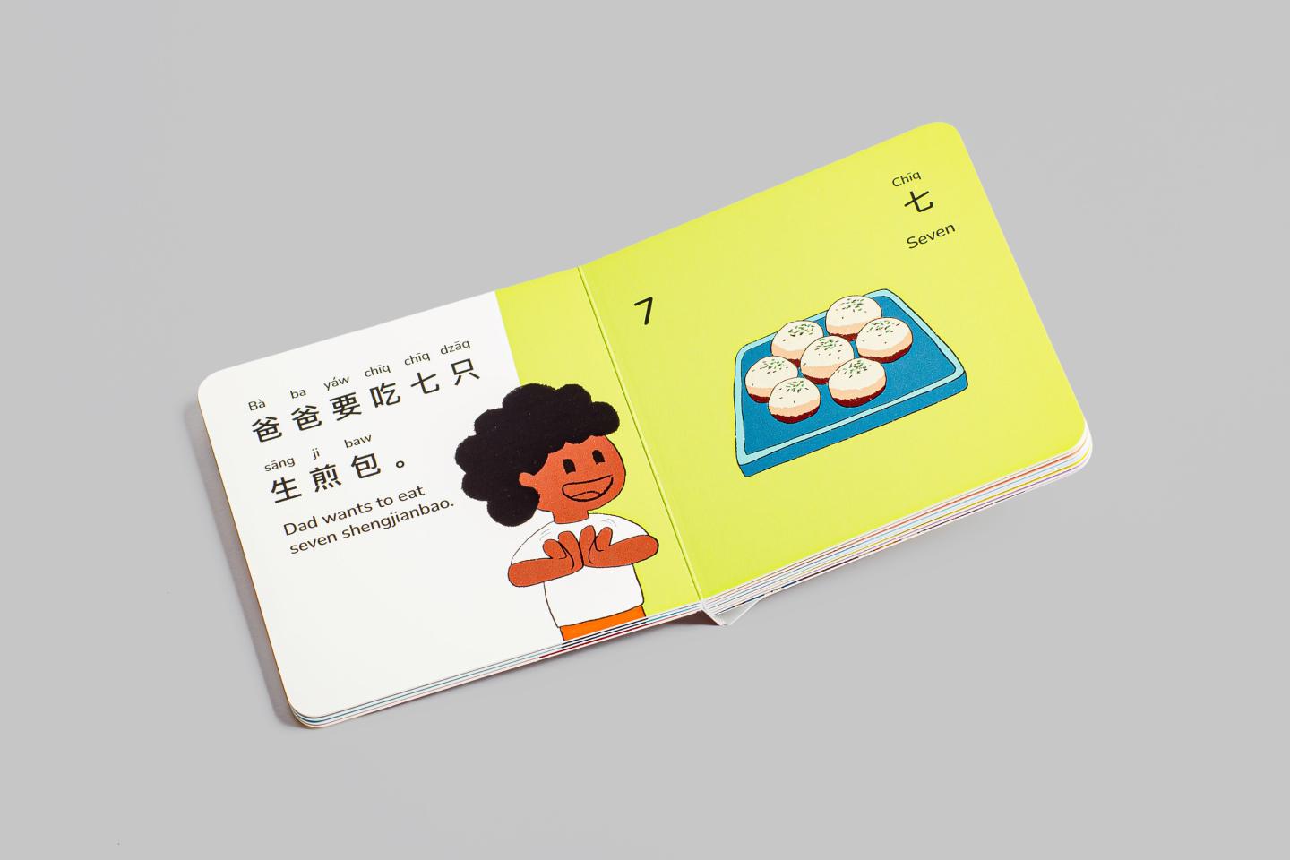It’s about a family ordering Shanghainese breakfast. It’s a bilingual book that teaches children basic numbers and family members in Shanghainese.