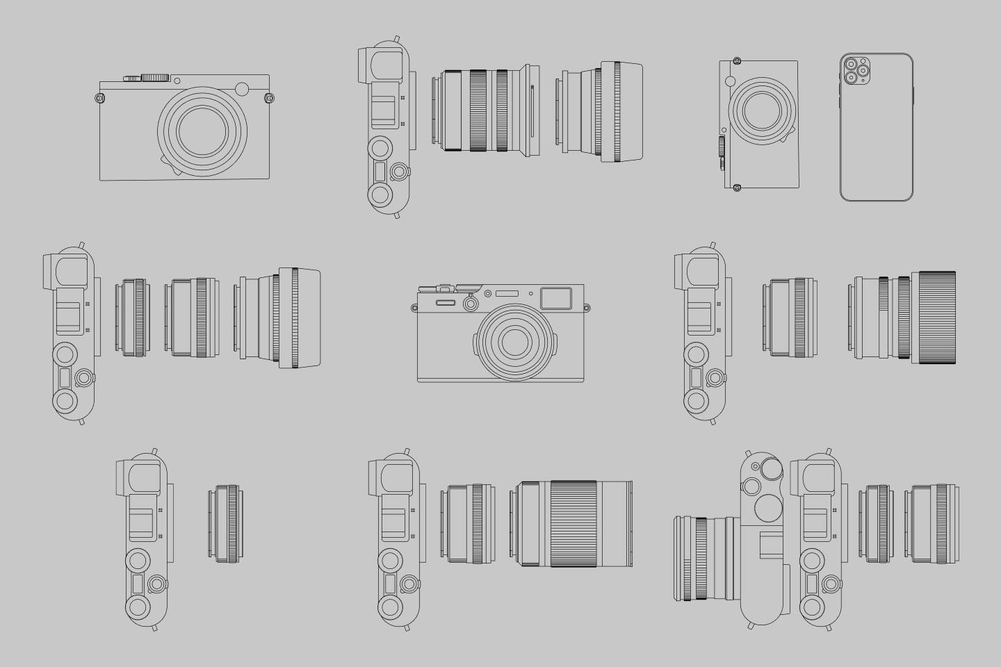 I was considering listing out cameras and lenses at the end of each post. That’s when I remembered my previous drawings of cameras. I decided an illustration with a legend would be a welcome addition.