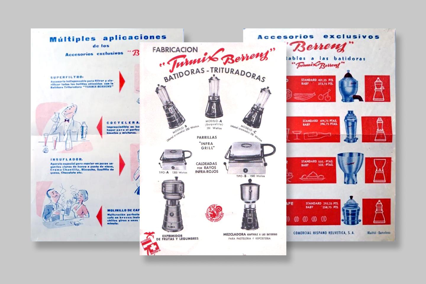 Enrique Berrens was running one such operation, bringing Swiss appliances under the Turmix name to Spain1. His company, like other import companies, slowly grew and began designing and selling objects of their own design. These were the beginnings of the electronics and appliances industry in Spain.