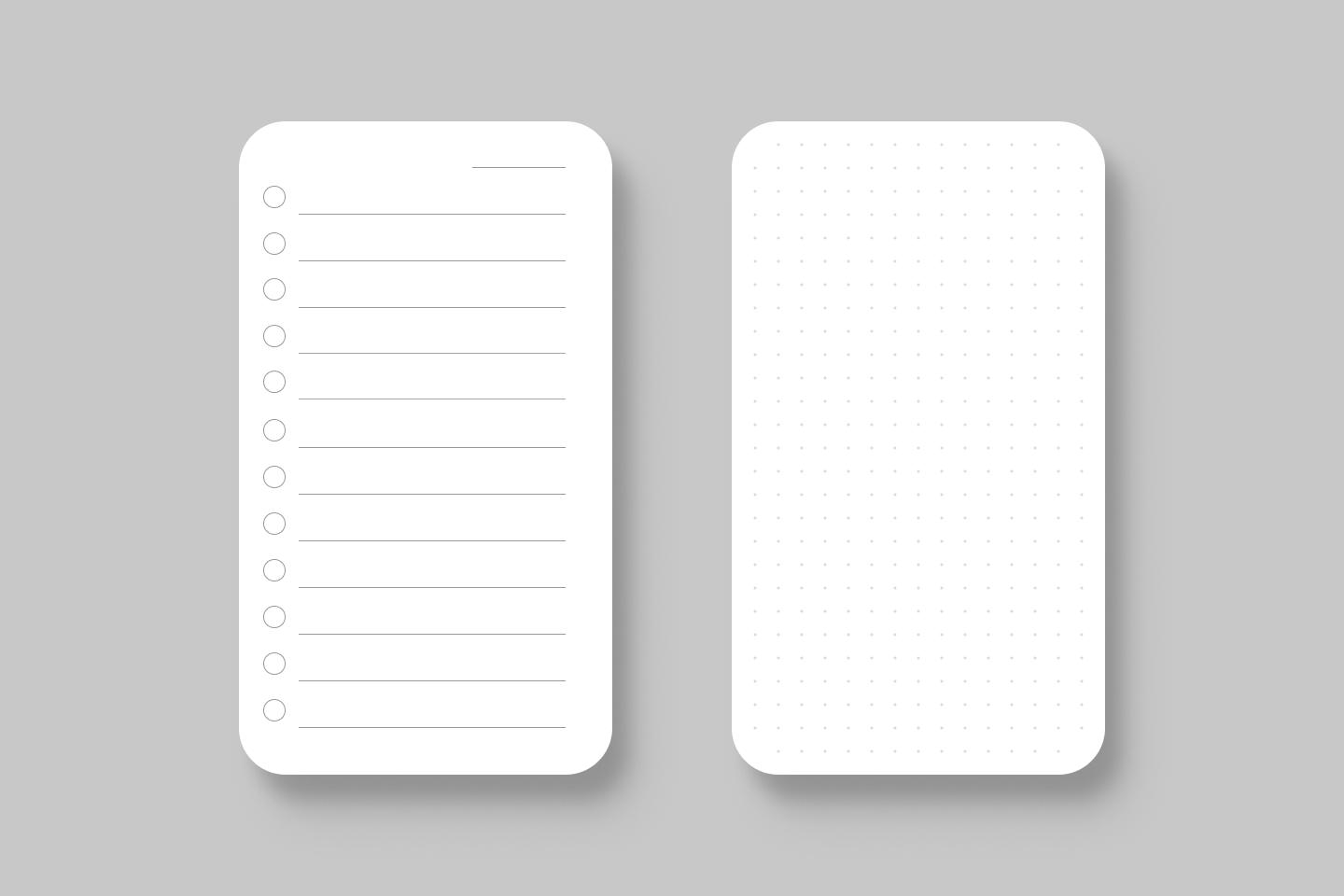 I quickly iterated through variations in Figma and sent the files off to a local print shop. The fronts of the cards are designed around an 1/8 inch grid, allowing for the date and twelve todos out front. I left the circles without the straight line that Jeff used in order to experiment with other ways of checking off items. The dots on the back are printed slightly lighter on a 1/16th inch grid to allow sketches to stand out.