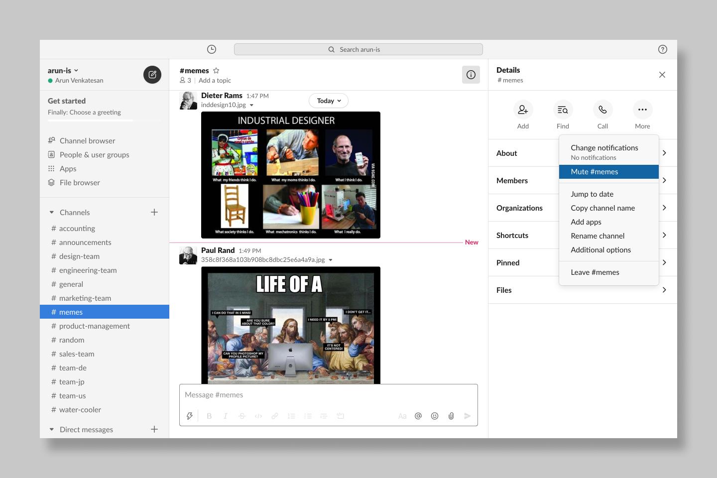 For channels that we don’t want to leave, muting is another excellent option. Muted channels still appear in the sidebar, but without prominent badges. So, we can still browse them as messages come in.