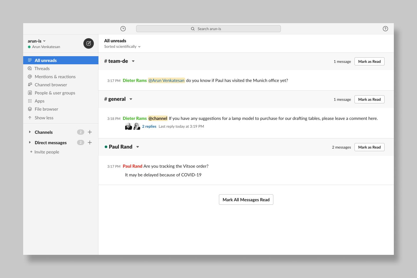 Slack’s flexibility is also its biggest weakness. Out of the box, it doesn’t force a specific way of using it. Why is that a bad thing? Let’s look at an example.