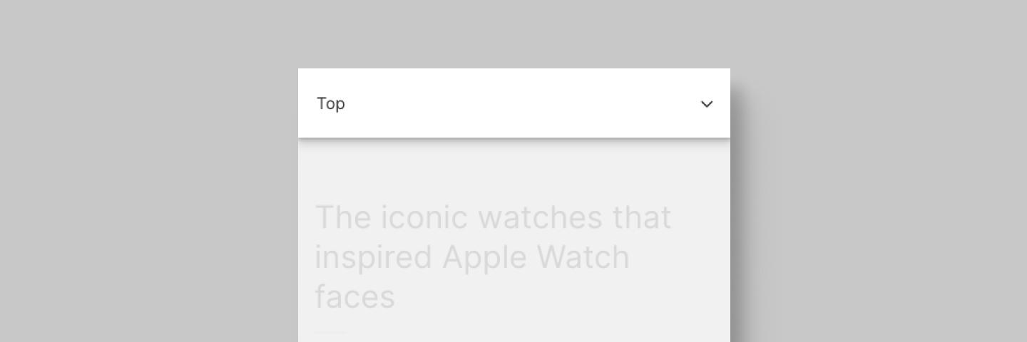 In medium screen sizes, the table of contents transforms into an expandable component that occupies the top of the screen with some space remaining around it. I added a shadow to accentuate that it sits above the other content.